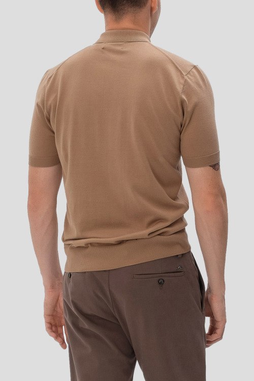 Детали: Мужской хлопковый джемпер-поло цвета кэмел от Polo Ralph Lauren (Поло Ральф Лорен). Отложной воротник, скрытая застежка на пуговицы, короткий рукав, классическая длина