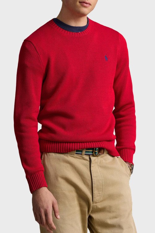 Детали: Женский красный джемпер из хлопка от Polo Ralph Lauren (Поло Ральф Лорен). Классическая длина, круглый вырез горловины длинные рукава, трикотажная резинка на манжетах и по низу изделия, вышитый лого на груди