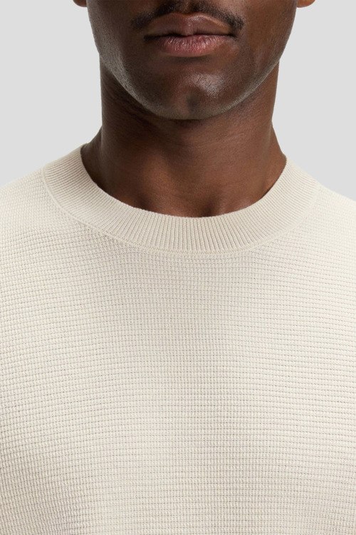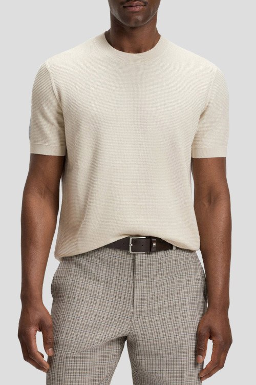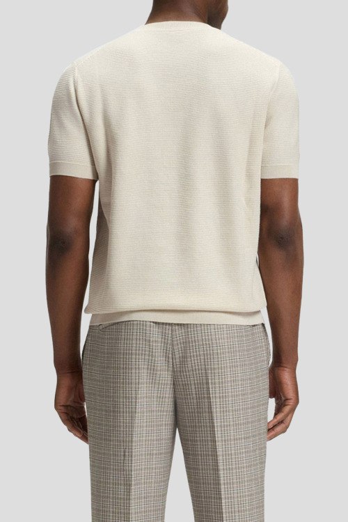 Детали: Мужской джемпер из лиоцелла и хлопка молочного оттенка H-Ianni от Hugo Boss (Хуго Босс). Классическая вязка, круглый вырез горловины, короткий рукав, классическая длина
