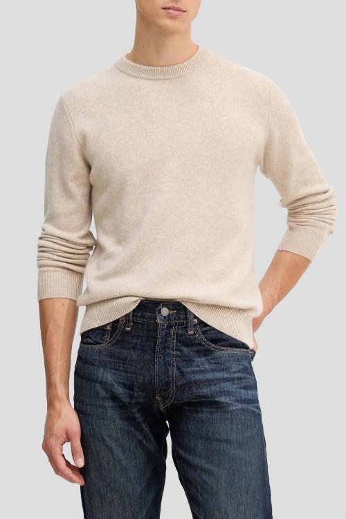 Детали: Мужской кашемировый джемпер молочного оттенка от Trussardi (Труссарди). Круглый вырез горловины, классическая длина, ребристые манжеты и нижний край
