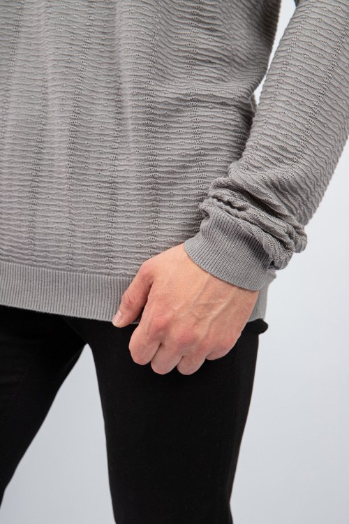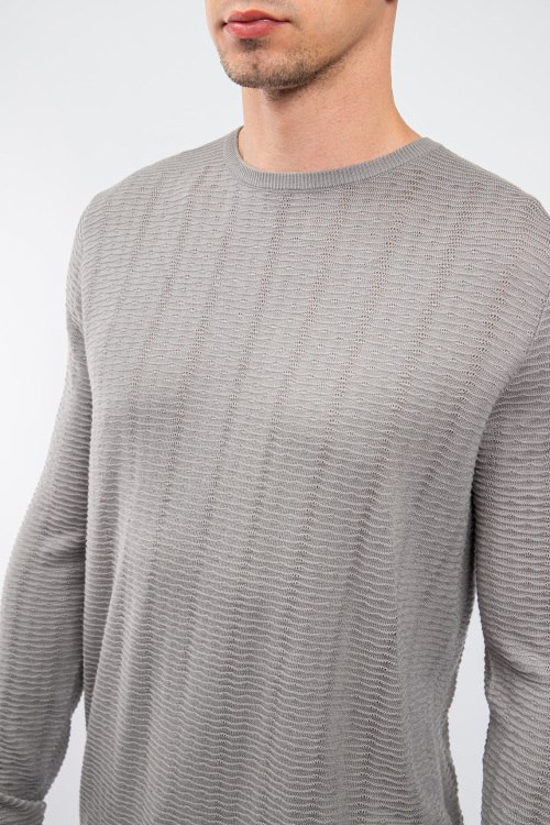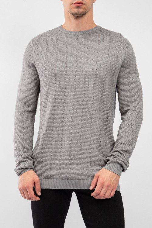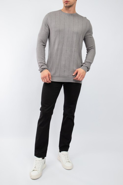 Детали: Мужской серый джемпер и вискозы и хлопка от Emporio Armani (Эмпорио Армани). Классическая вязка, круглый вырез горловины, классическая длина, ребристые манжеты и нижний край
