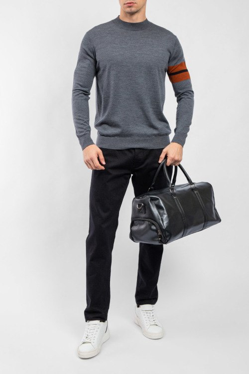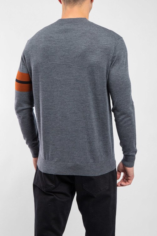 Мужской серый кашемировый джемпер от Ermenegildo Zegna (Эрменеджильдо Зенья). Контрастная вставка на рукаве, круглый вырез горловины, классическая длина, манжеты и нижний край в рубчик.