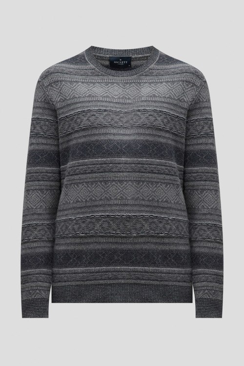 Детали: Мужской серый шерстяной джемпер от Hackett (Хаккетт). Дизайн с узором, круглый вырез горловины, трикотажная резинка на манжетах и по низу изделия. Измерения: длина рукава: длинный, для размера М - 67 см, обхват груди: для размера М - 108 см, обхват талии: для размера М - 106 см, длина изделия по среднему шву спинки от горловины: для размера М - 68 см