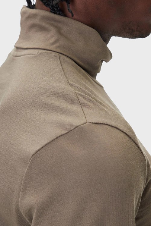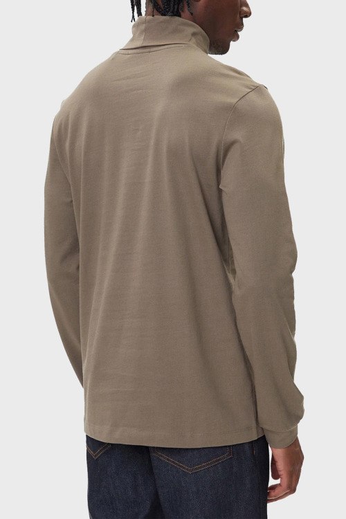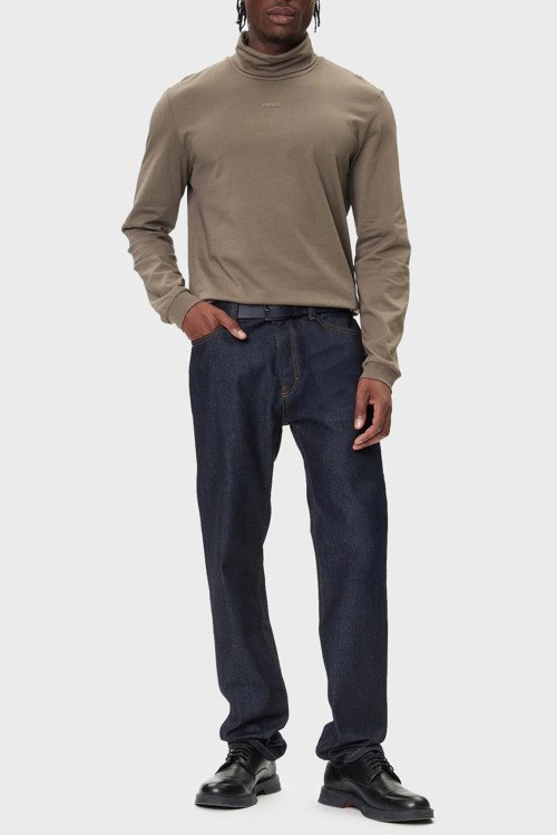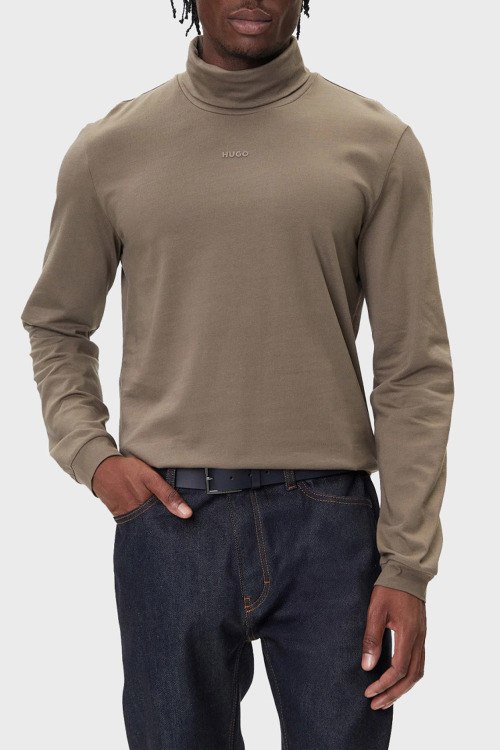 Детали: Мужской хлопковый гольф цвета тауп Daporollo от Hugo by Hugo Boss (Хуго бай Хуго Босс). Высокая горловина, логотип на груди, классическая длина