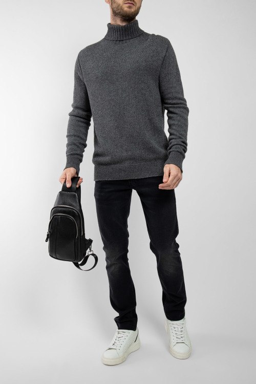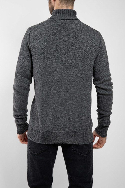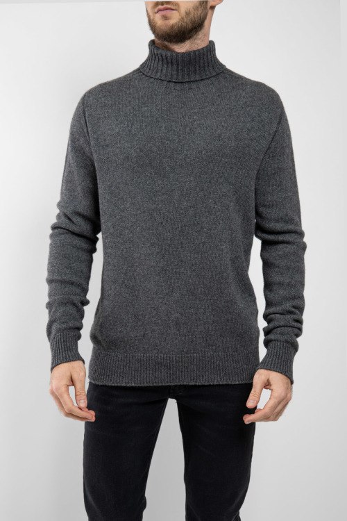 Мужской серый гольф из шерстяного микса от J.B4 Just Before (Джаст Бифо). Высокий воротник-стойка с отворотом, длинные рукава, манжеты и низ изделия на трикотажной резинке.