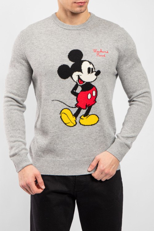 Детали: Мужской серый джемпер из шерсти и вискозы Disney от Mc2 Saint Barth (Mc2 Сент Барт). Модель с примесью кашемира, узор на груди, круглый вырез горловины, классическая длина, ребристые манжеты и нижний край
