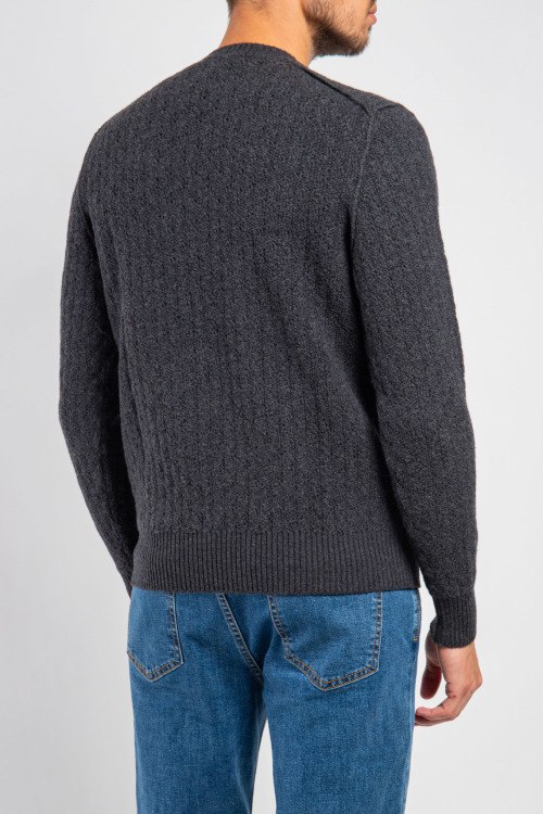 Детали: Мужской серый джемпер из микса шерсти и кашемира от Piacenza Cashmere (Пьяченца Кашемир). Модель с парфюмированной пропиткой, классическая длина, круглый вырез горловины, длинные рукава-реглан, трикотажная резинка на манжетах и по низу изделия, дизайн с узором