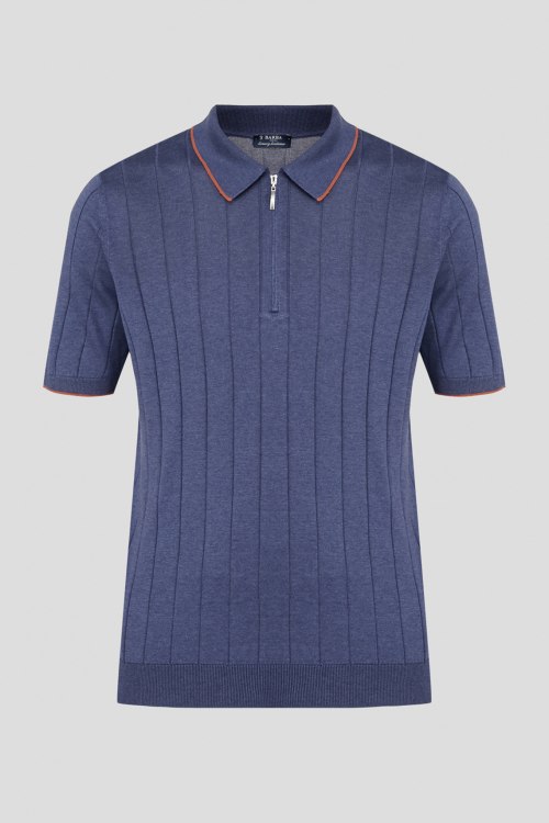Детали: Мужской синий шелковый джемпер-поло от Barba Napoli (Барба Наполи). Классический воротник, горловина на молнии, контрастная окантовка, трикотажная резинка на манжетах и по низу изделия. Замеры: длина рукава: короткий, для размера 50 - 27 см, обхват груди: для размера 50 - 100 см, обхват талии: для размера 50 - 94 см, длина изделия по среднему шву спинки от горловины: для размера 50 - 66 см