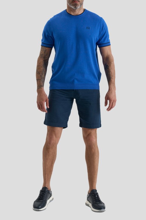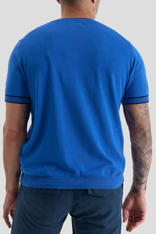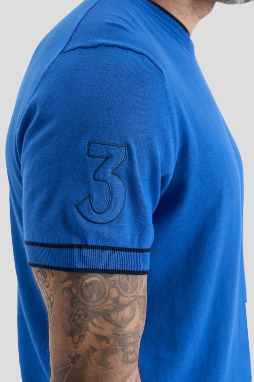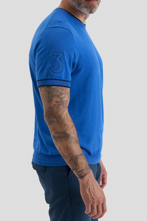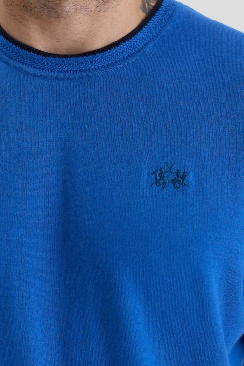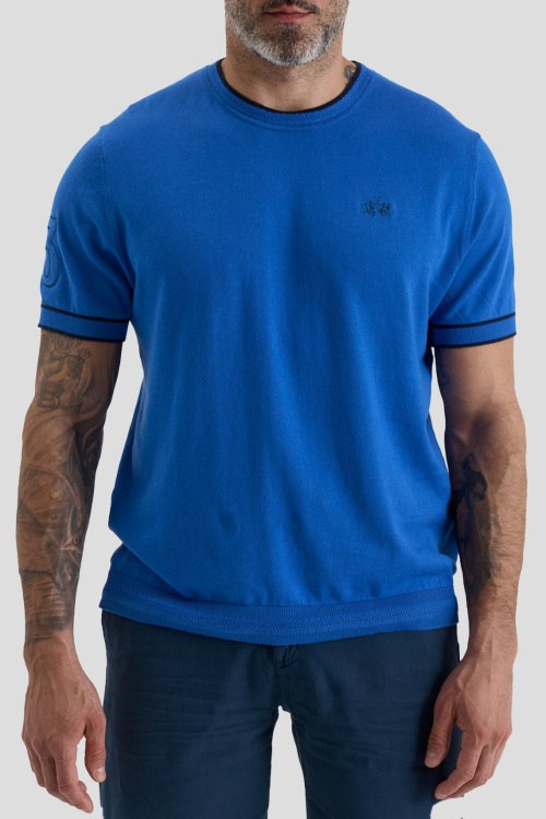 Детали: Мужской синий хлопковый джемпер от La Martina (Ла Мартина). Логотип на груди, круглый вырез горловины, короткий рукав, классическая длина
