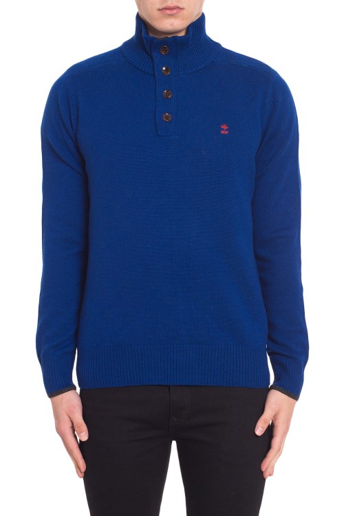 Детали: Комбинированный свитер прямого кроя, длинный рукав, высокая горловина на пуговицах