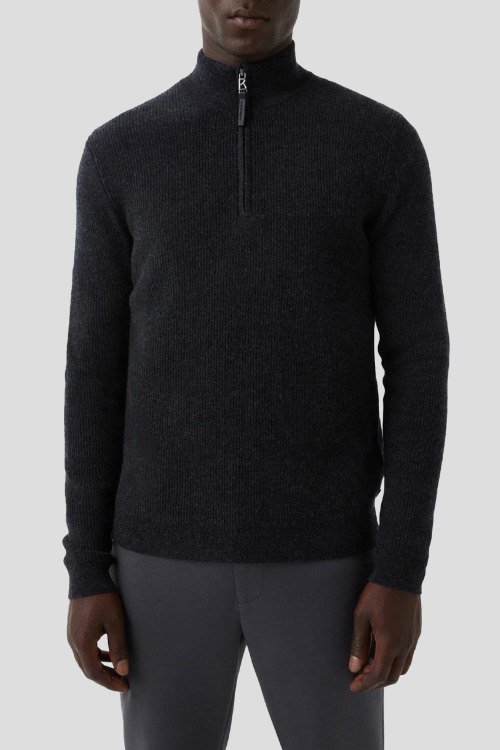 Детали: Мужской темно-серый шерстяной джемпер Derek от Bogner (Богнер). Классическая вязка, высокая горловина, застежка-молния, классическая длина