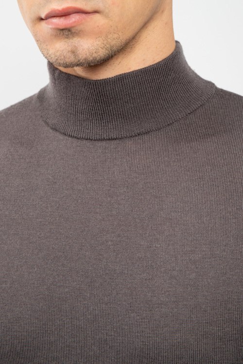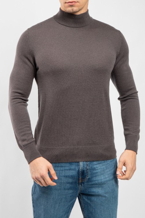 Мужской темно-серый шерстяной гольф от Bikkembergs (Биккембергс). Высокая горловина, классическая длина, ребристые манжеты и нижний край.