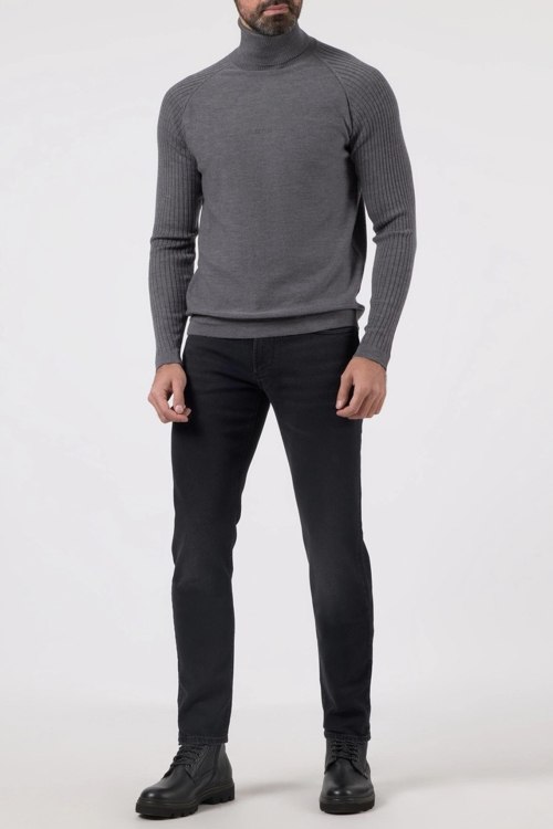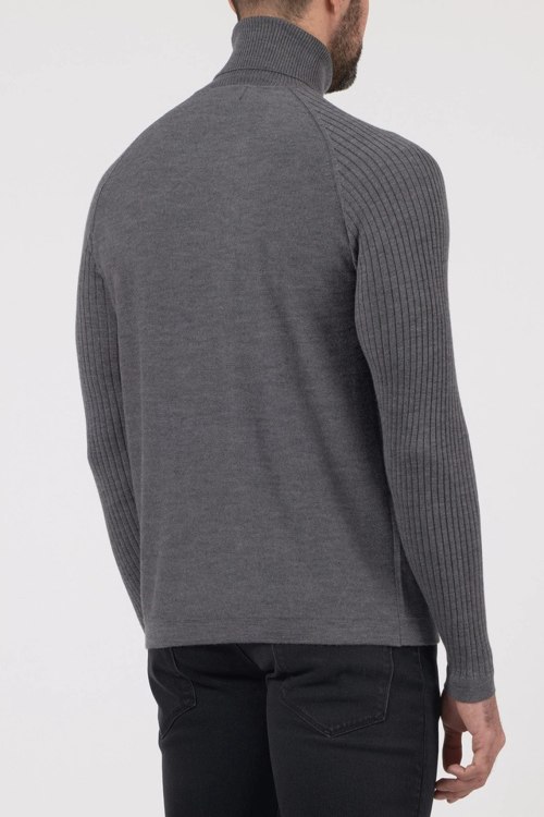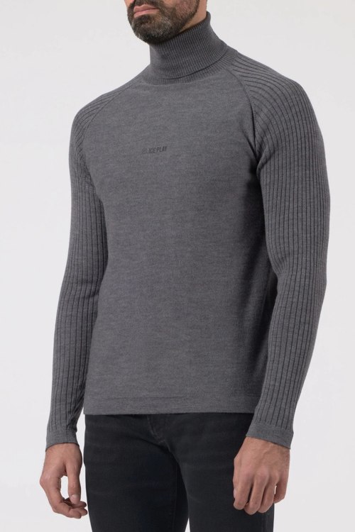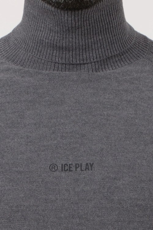 Детали: Мужской темно-серый шерстяной гольф от Ice Play (Айс Плей). Логотип на груди, высокая горловина, рукава в рубчик, классическая длина