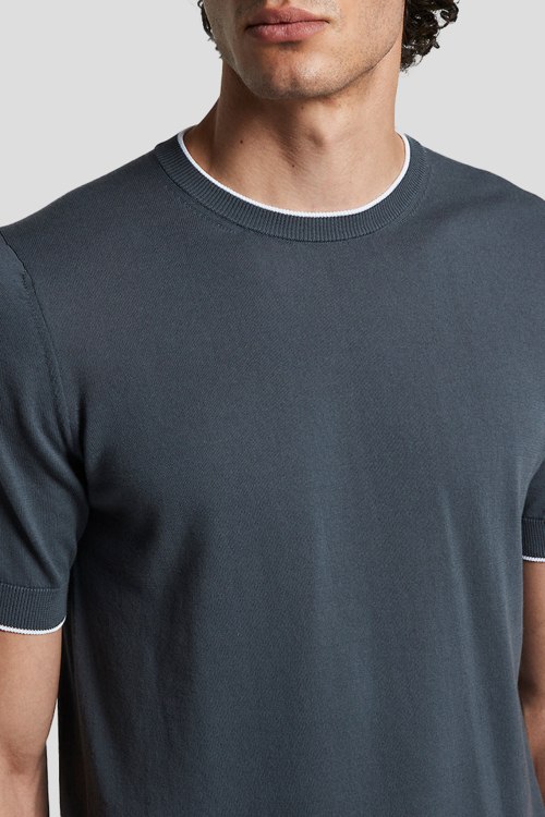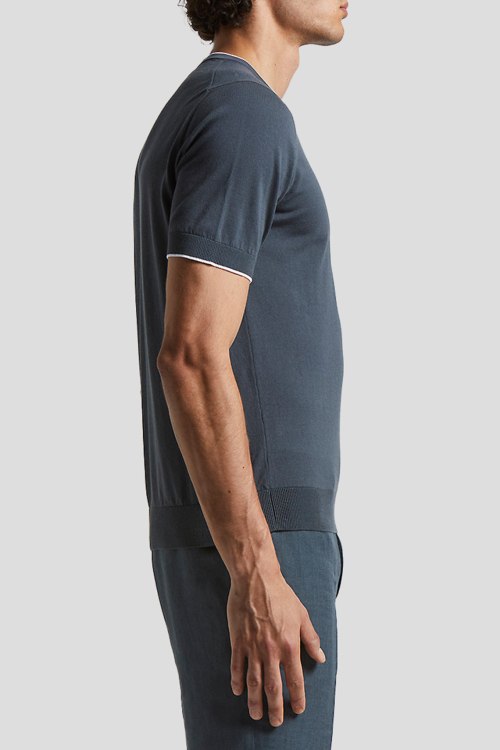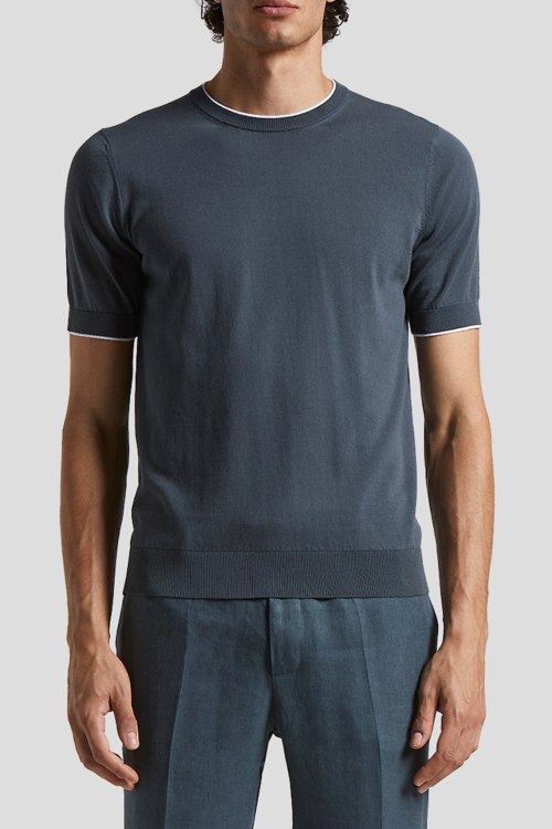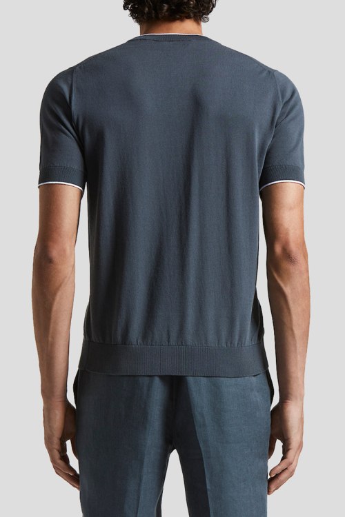 Детали: Мужской темно-серый джемпер из хлопка от Peserico (Пезерико). Классическая длина, круглый вырез горловины, короткие рукава, манжеты с окантовкой