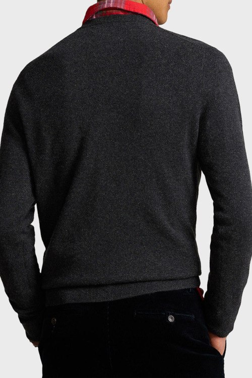 Детали: Мужской темно-серый джемпер Intarsia dog из кашемира от Polo Ralph Lauren (Поло Ральф Лорен). Классическая длина, круглый вырез горловины, длинные рукава, модель с принтом спереди, манжеты и низ изделия на трикотажной резинке