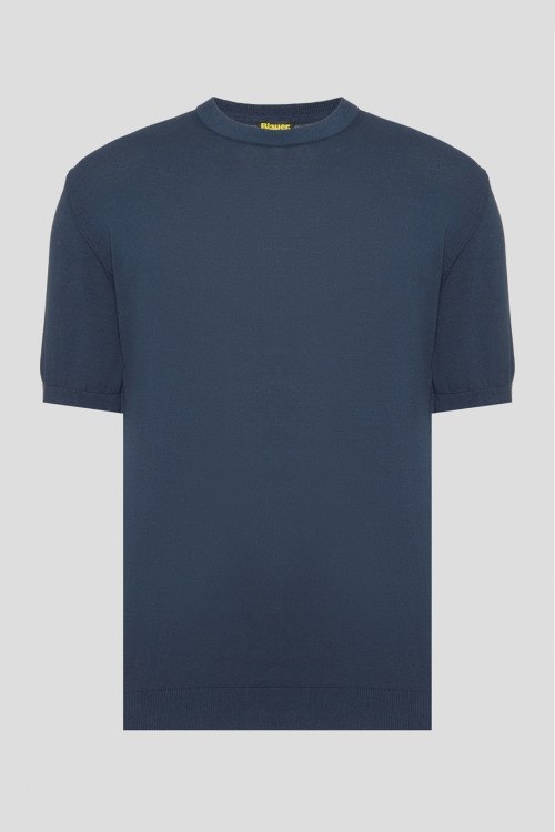 Детали: Мужской темно-синий хлопковый джемпер от Blauer (Блауэр). Круглый вырез горловины, короткий рукав, классическая длина. Длина рукава: короткий, для размера М - 25 см, обхват груди: для размера М - 110 см, обхват талии: для размера М - 102 см, длина изделия по среднему шву спинки от горловины: для размера М - 66 см