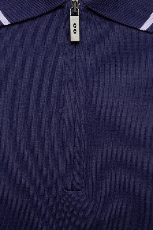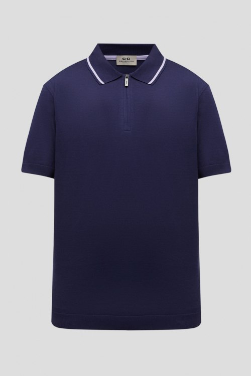 Детали: Мужской темно-синий джемпер-поло из хлопка от Corneliani (Корнелиани). Классический воротник, горловина на молнии, короткие рукава. Замеры: длина рукава: короткий, для размера 50 - 24 см, обхват груди: для размера 50 - 108 см, обхват талии: для размера 50 - 100 см, длина изделия по среднему шву спинки от горловины: для размера 50 - 69 см