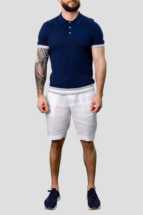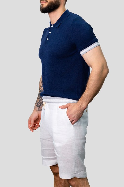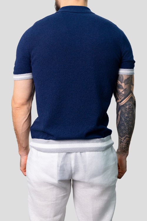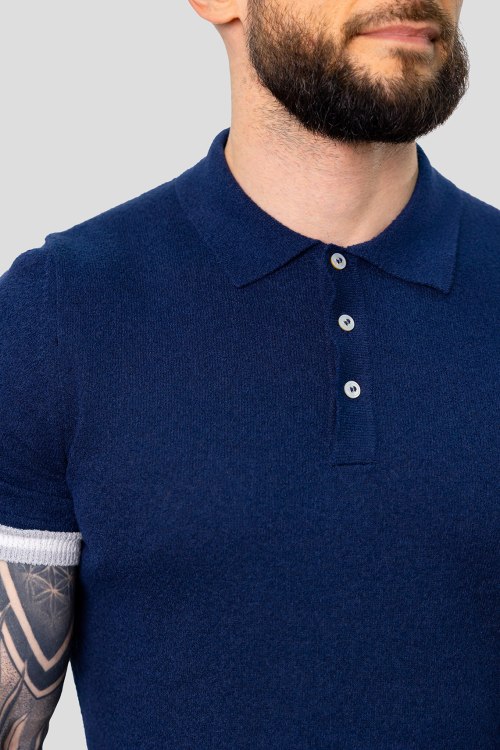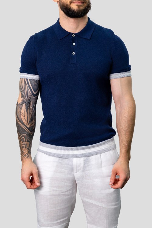 Детали: Мужской темно-синий джемпер-поло из хлопкового микса от Gran Sasso (Гран Сассо). Отложной воротник, застежка на три пуговицы, короткий рукав, классическая длина