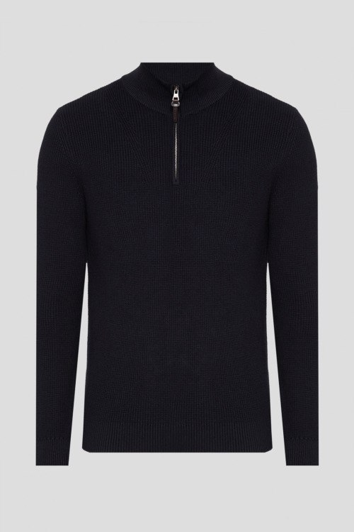 Детали: Мужской темно-синий хлопковый джемпер от Hackett (Хаккетт). Модель с примесью кашемира, классическая вязка, воротник-стойка с застежкой на молнию, классическая длина. Длина рукава: длинный, для размера М - 65 см, обхват груди: для размера М - 100 см, обхват талии: для размера М - 100 см, длина изделия по среднему шву спинки от горловины: для размера М - 69,5 см