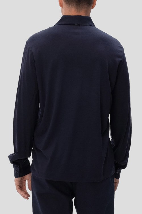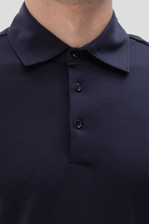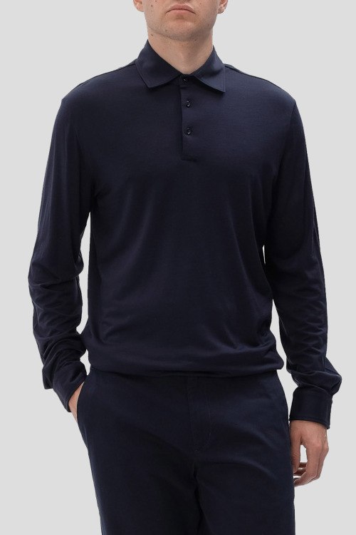 Детали: Мужской темно-синий шерстяной джемпер-поло от Herno (Эрно). Отложной воротник, застежка на три пуговицы, классическая длина
