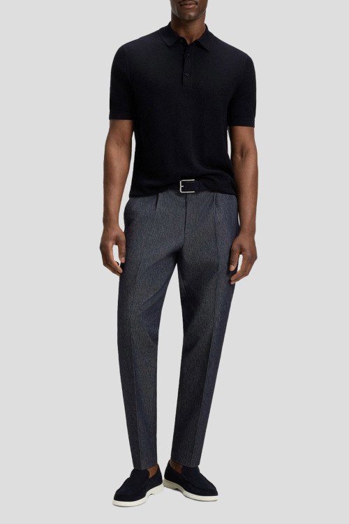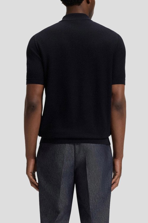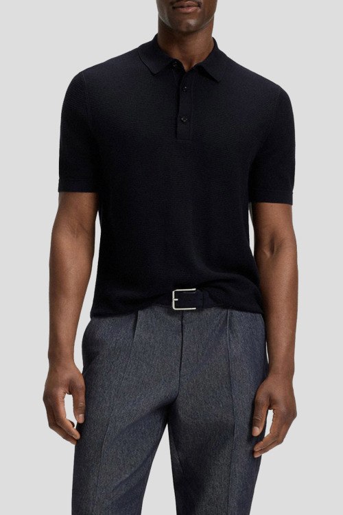 Детали: Мужской темно-синий джемпер-поло из лиоцелла и хлопка H-Iannotti от Hugo Boss (Хуго Босс). Отложной воротник, застежка на три пуговицы, короткий рукав, классическая длина