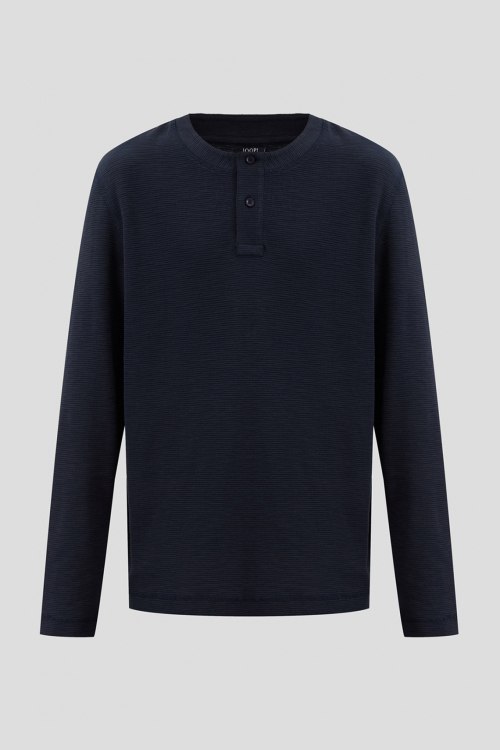 Детали: Мужской темно-синий джемпер из хлопка от Joop! (Йооп!). Прямой фасон, круглый вырез горловины, застежка на две пуговицы. Замеры: длина рукава: длинный, для размера М - 66 см, обхват груди: для размера М - 116 см, обхват талии: для размера М - 112 см, длина изделия по среднему шву спинки от горловины: для размера М - 69 см