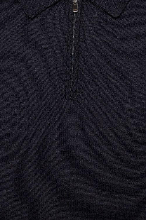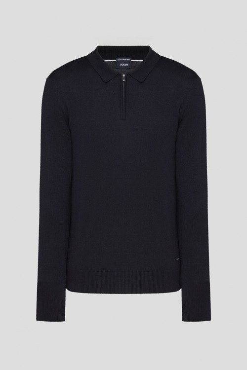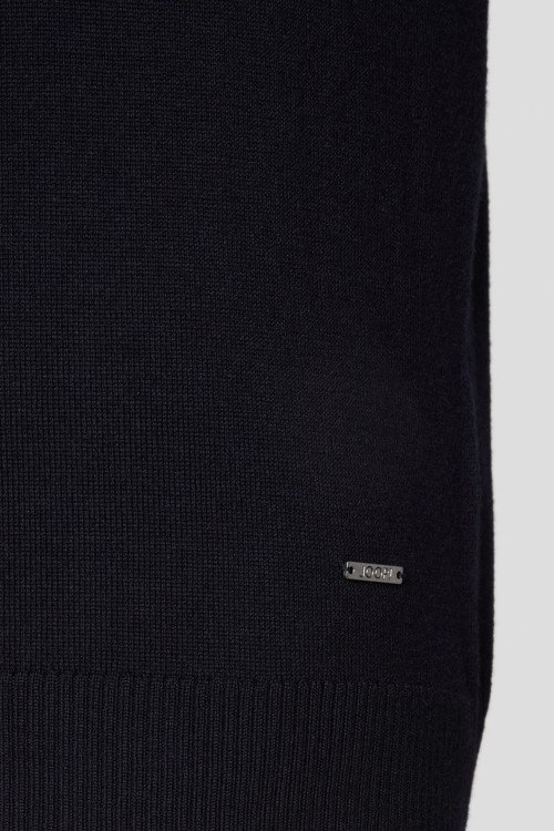 Детали: Мужской темно-синий шерстяной джемпер-поло от Joop! (Йооп!). Отложной воротник, застежка-молния, длинный рукав, манжеты и нижний край в рубчик. Длина рукава: длинный, для размера M - 71 см, обхват груди: для размера M - 104 см, обхват талии: для размера M - 104 см, длина изделия по среднему шву спинки от горловины: для размера M - 69 см