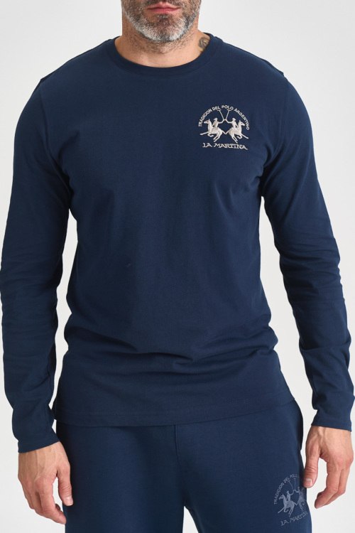 Детали: Мужской темно-синий хлопковый лонгслив от La Martina (Ла Мартина). Логотип на груди, круглый вырез горловины, длинный рукав, классическая длина. Параметры модели: 103 см - 87 см - 99 см. Рост - 182 см. Размер на фото - L
