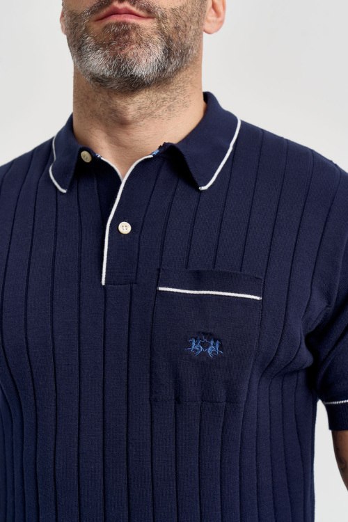 Детали: Мужской темно-синий хлопковый джемпер-поло от La Martina (Ла Мартина). Карман с логотипом на груди, отложной воротник, застежка на две пуговицы, короткий рукав, классическая длина. Параметры модели: 103 см - 87 см - 99 см. Рост - 182 см. Размер на фото - L