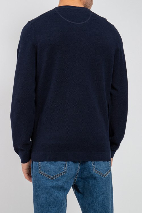 Мужской темно-синий хлопковый джемпер от Olymp (Олимп). Круглый вырез горловины, классическая длина, манжеты и нижний край в рубчик.