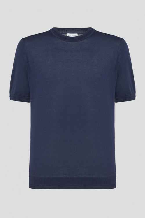 Детали: Мужской темно-синий джемпер из лиоцелла и хлопка от Pal Zileri (Пал Зилери). Круглый вырез горловины, короткий рукав, классическая длина. Длина рукава: короткий, для размера 50 - 25 см, обхват груди: для размера 50 - 108 см, обхват талии: для размера 50 - 104 см, длина изделия по среднему шву спинки от горловины: для размера 50 - 67 см