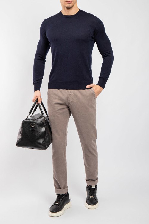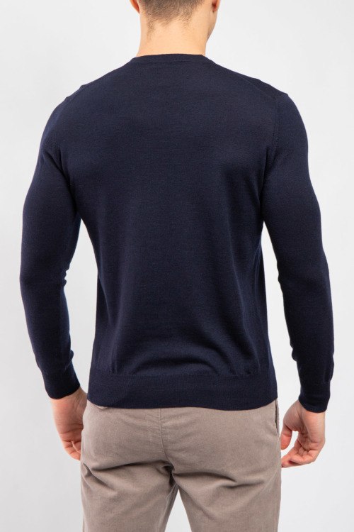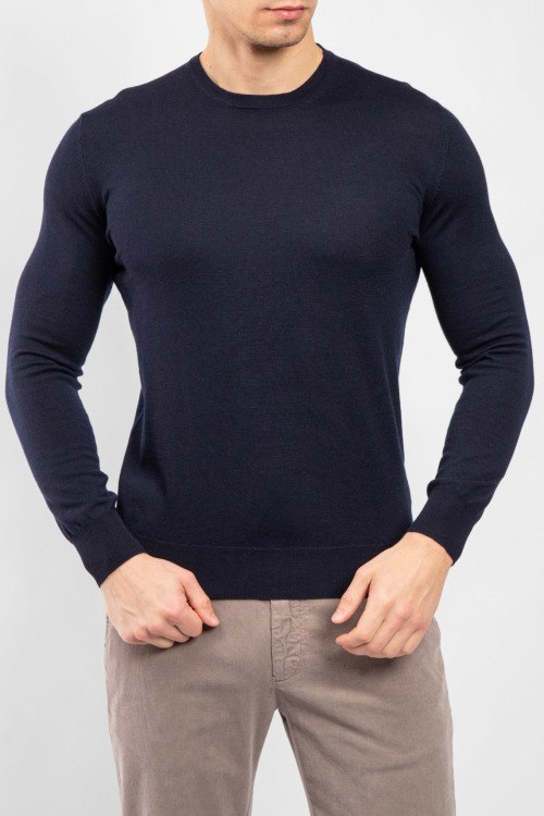 Детали: Мужской темно-синий шерстяной джемпер от Panicale Cashmere (Паникале Кашемир). Круглый вырез горловины, классическая длина, ребристые манжеты и нижний край. Размер вещи на фото: 50