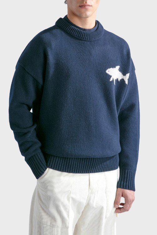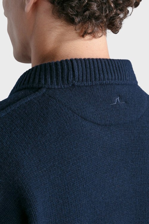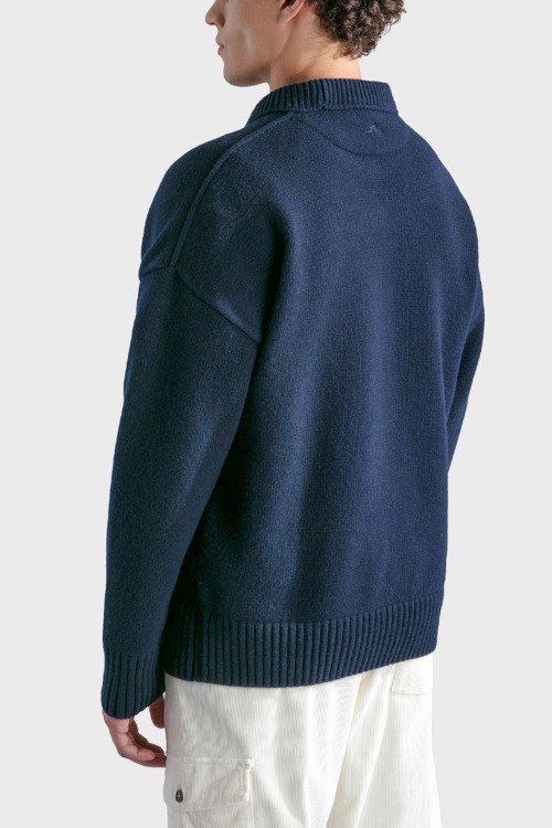 Детали: Мужской темно-синий шерстяной джемпер от Paul & Shark (Пол энд Шарк). Логотип на груди, круглый вырез горловины, классическая длина, манжеты и нижний край в рубчик