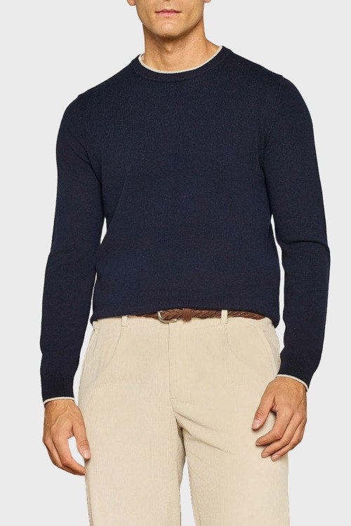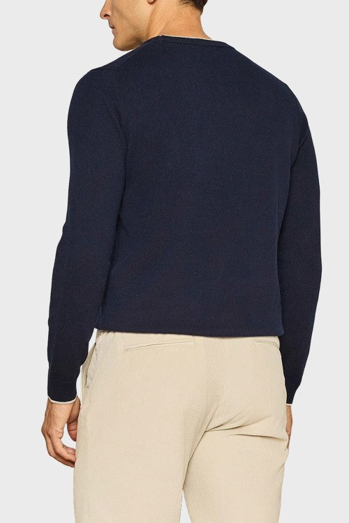 Детали: Мужской темно-синий джемпер из шерсти и кашемира от Paul Taylor (Пол Тейлор). Круглый вырез горловины, длинный рукав, классическая длина