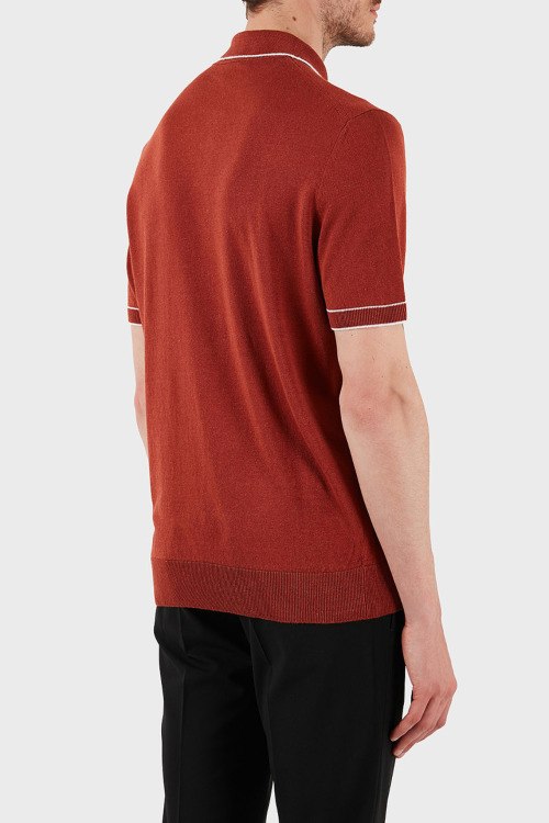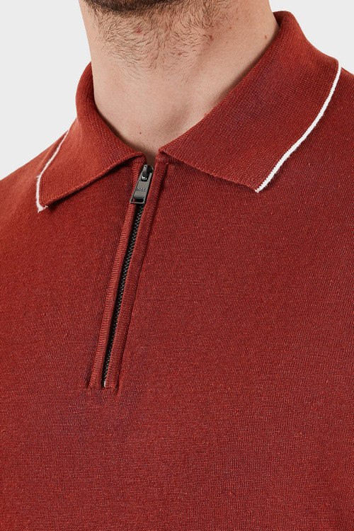 Детали: Мужской терракотовый джемпер-поло из льна и вискозы H-Jiovanotto от Hugo Boss (Хуго Босс). Отложной воротник, застежка-молния, короткий рукав, классическая длина