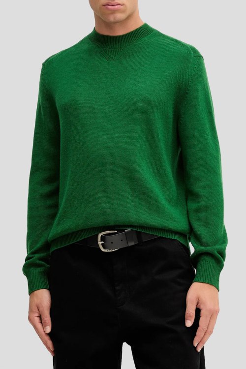 Детали: Мужской зеленый джемпер из хлопка и шерсти от Armani Exchange (Армани Эксчендж). Воротник-стойка, классическая длина, ребристые манжеты и нижний край
