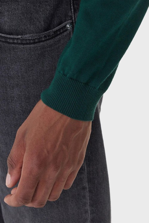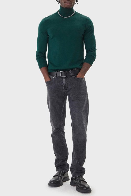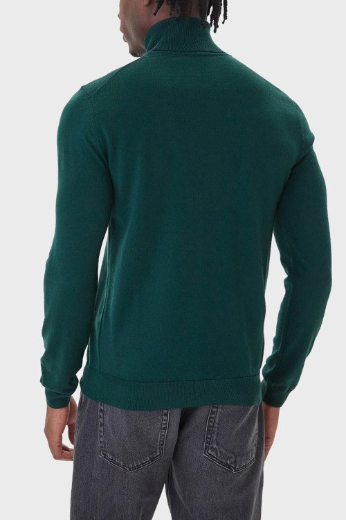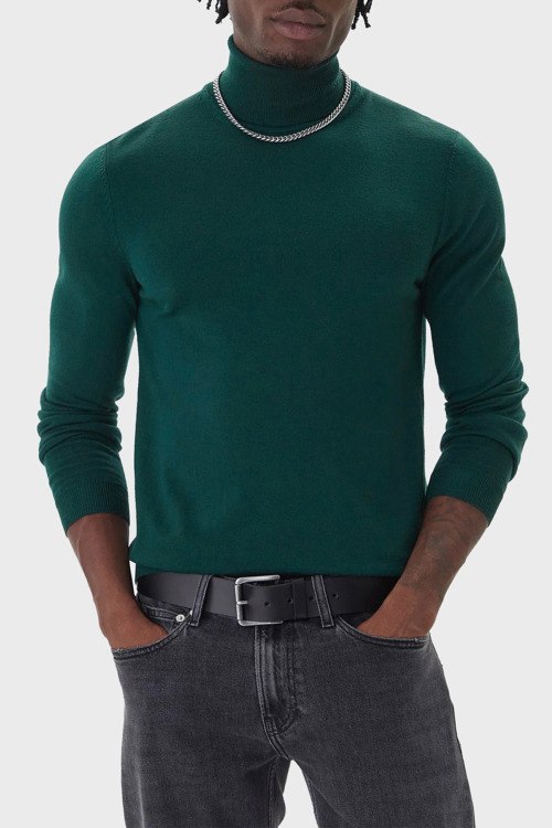 Детали: Мужской зеленый шерстяной гольф San Thomas от Hugo by Hugo Boss (Хуго бай Хуго Босс). Высокая горловина, классическая длина, ребристые манжеты и нижний край
