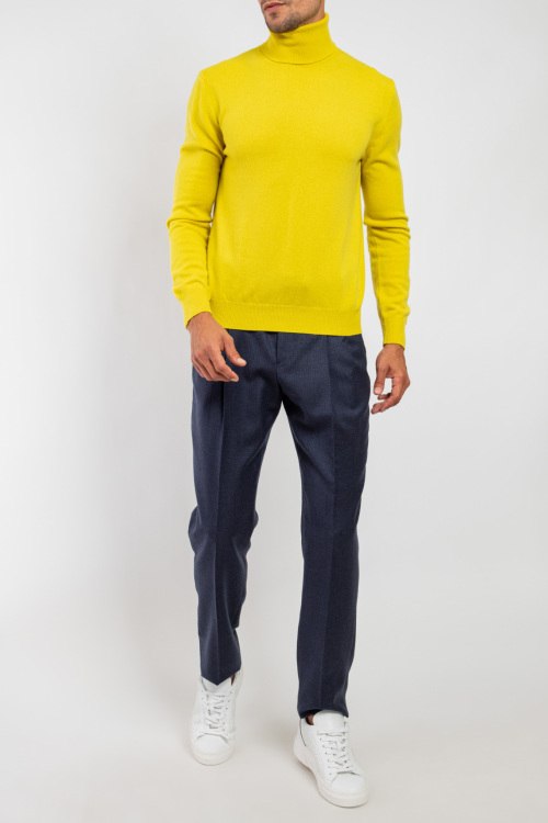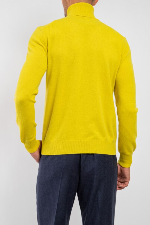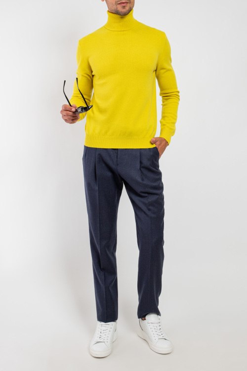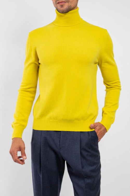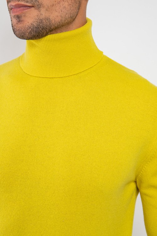 Мужской желтый кашемировый гольф от Scabal (Скабал). Высокая горловина, классическая длина, манжеты и нижний край в рубчик.