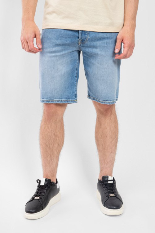 Детали: Мужские голубые джинсовые шорты от Blauer (Блауэр). Пяти-карманная модель, пояс с петлями для ремня, прямой крой, длина до колен