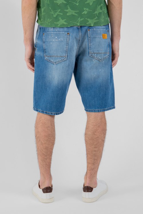 Мужские голубые джинсовые шорты от Antony Morato (Энтони Морато). Средняя длина, прямой фасон, застегиваются на пуговицы, четыре кармана, декор из потертостей.