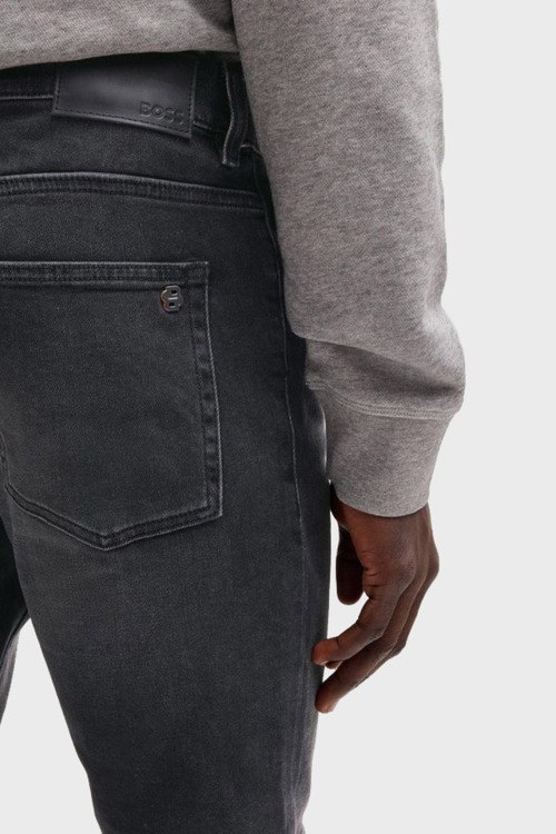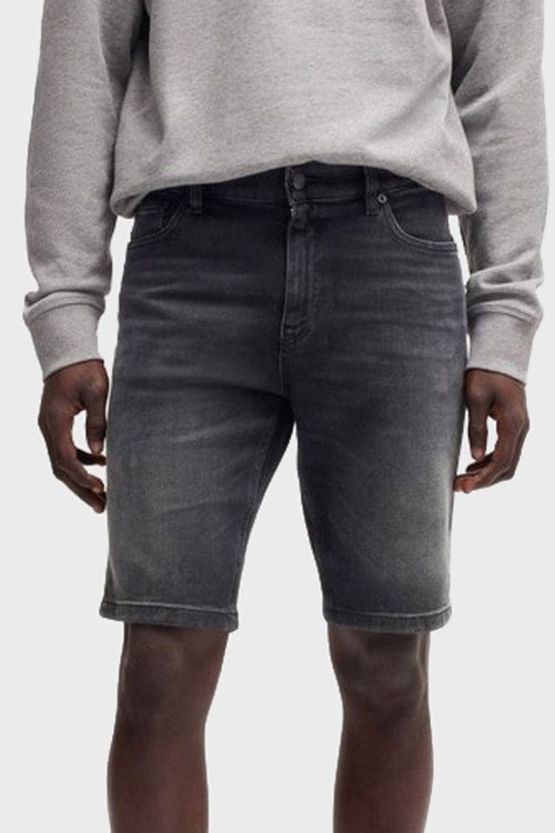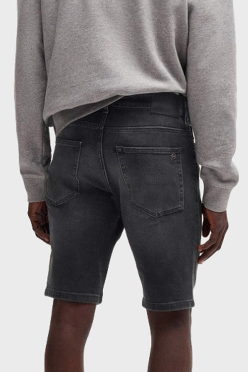 Детали: Мужские темно-серые джинсовые шорты Delaware от Hugo Boss (Хуго Босс). Пяти-карманная модель, пояс с петлями для ремня, нашивка с логотипом сзади на поясе, длина до колен