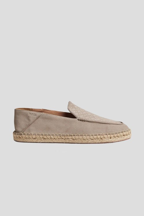 Детали: Мужские бежевые эспадрильи Madeira Elephant из замши от Hugo Boss (Хуго Босс). Закругленный носок, тиснение с логотипом бренда спереди, мягкий задник, плетенный элементы вдоль подошвы