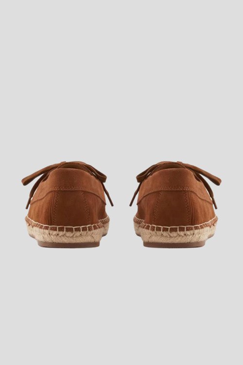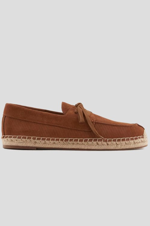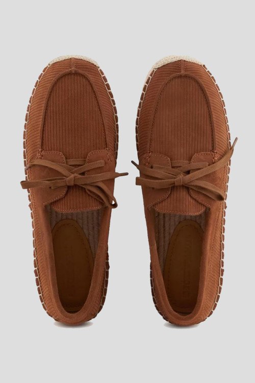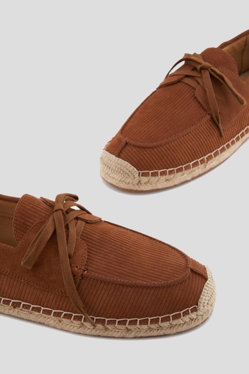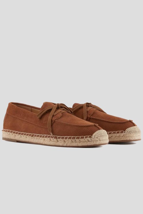 Детали: Мужские коричневые эспадрильи из замша от Emporio Armani (Эмпорио Армани). Миндалевидный носок, плетенная вставка вдоль подошвы, спереди шнуровка