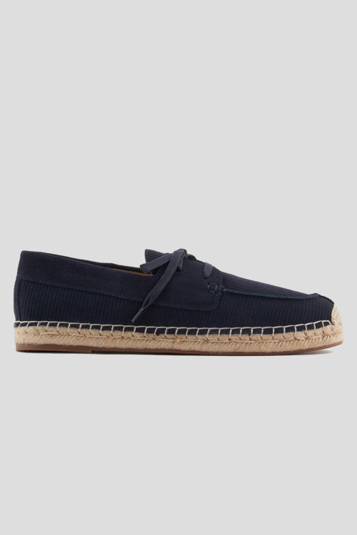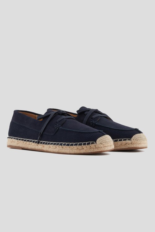 Детали: Мужские темно-синие замшевые эспадрильи от Emporio Armani (Эмпорио Армани). Модель со шнуровкой, закругленный носок, кожаная стелька