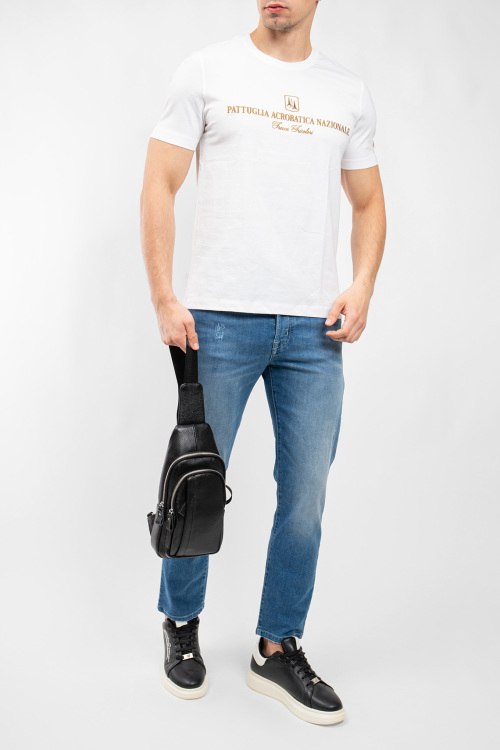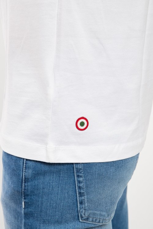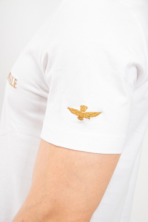 Мужская белая хлопковая футболка от Aeronautica Militare (Аэронавтика Милитари). Вышивка на груди, круглый вырез горловины, короткий рукав, классическая длина.