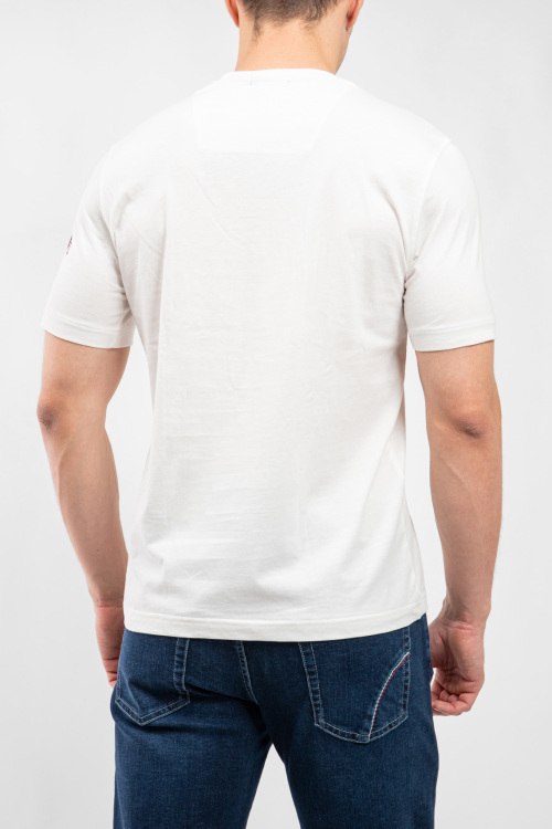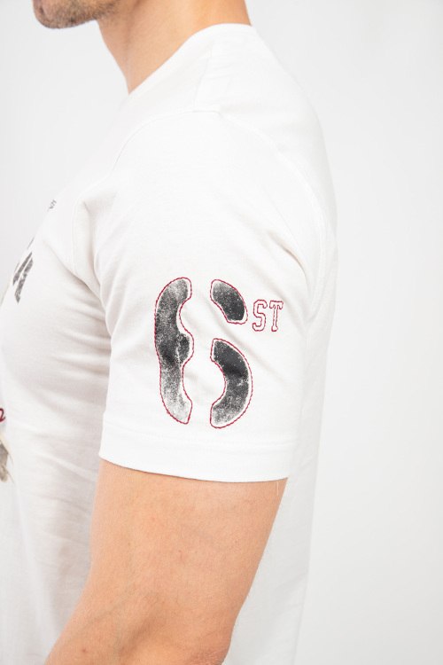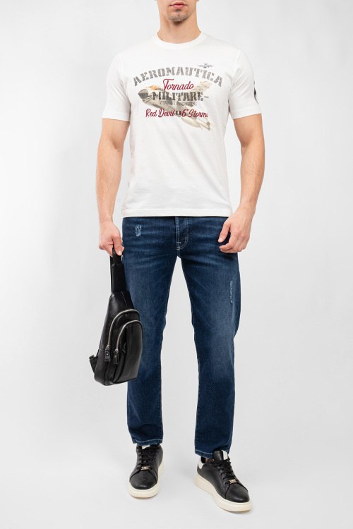 Мужская белая хлопковая футболка от Aeronautica Militare (Аэронавтика Милитари). Принт на груди, круглый вырез горловины, короткий рукав, классическая длина.