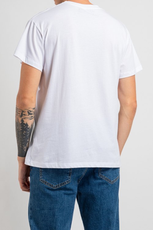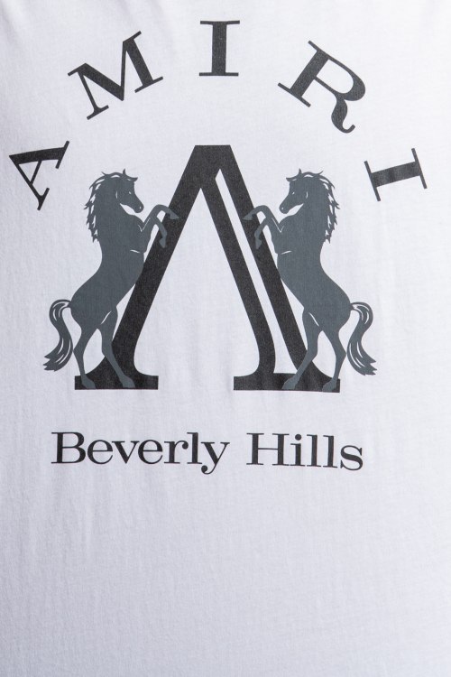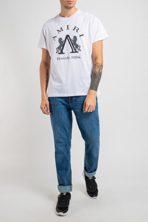 Детали: Мужская белая хлопковая футболка от Amiri (Амири). Принт с логотипом спереди, круглый вырез горловины, короткий рукав