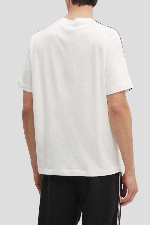Детали: Мужская белая хлопковая футболка от Armani Exchange (Армани Эксчендж). Логотип на груди, круглый вырез горловины, короткий рукав с лампасами, классическая длина
