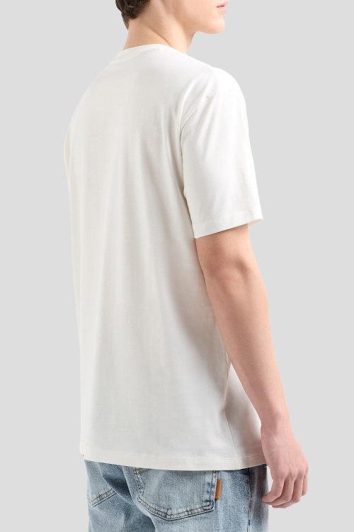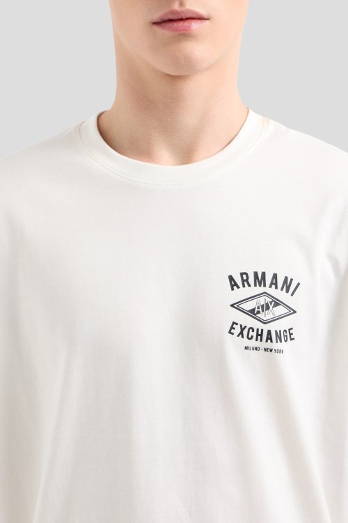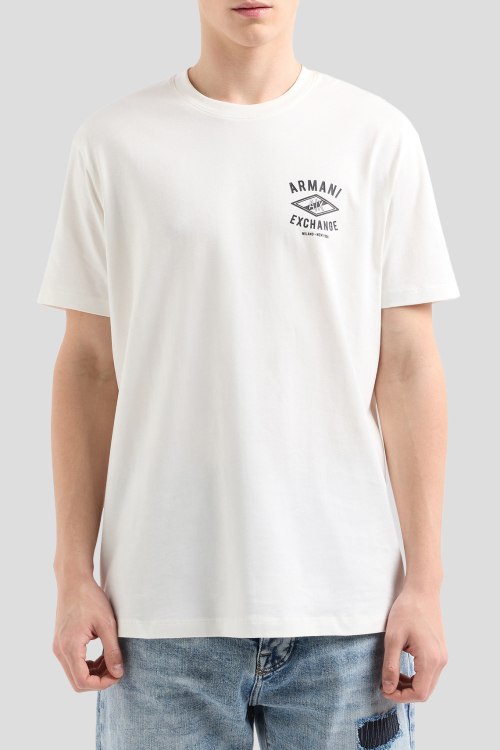 Детали: Мужская белая хлопковая футболка от Armani Exchange (Армани Эксчендж). Логотип на груди, круглый вырез горловины, короткий рукав, классическая длина