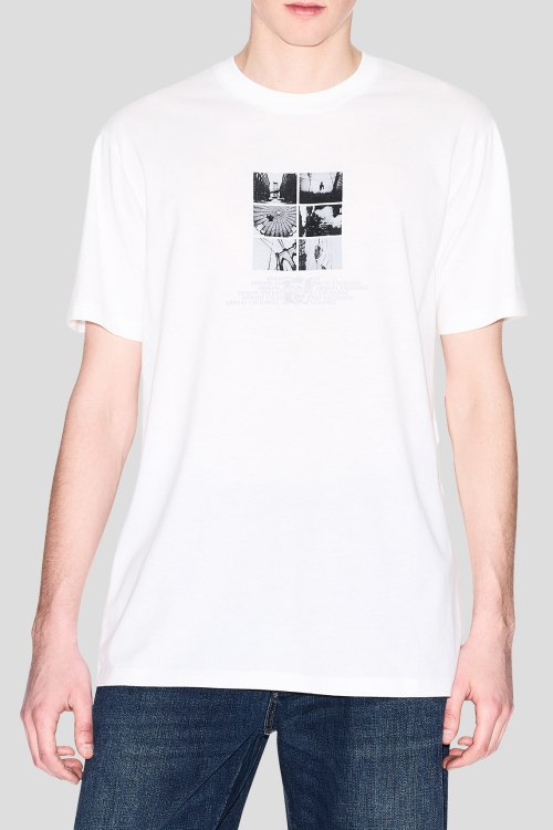 Детали: Мужская белая хлопковая футболка от Armani Exchange (Армани Эксчендж). Принт на груди, круглый вырез горловины, короткий рукав, классическая длина